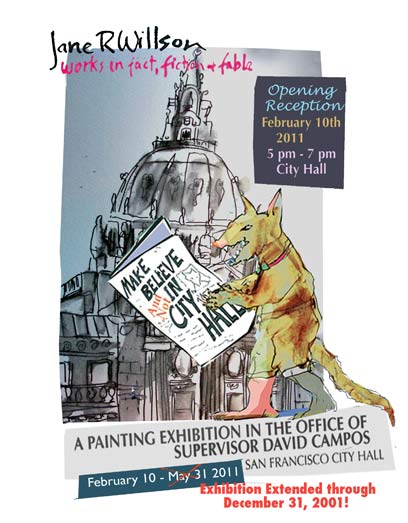 I am blown away by this fairy castle, nestled in the heart of our beautiful City. Please come view my solo "Make Believe--And Not--In City Hall" exhibit, held in Supervisor David Campos's Office, San Francisco City Hall (2nd Floor). Hours: 9 am - 5 pm Monday - Friday.